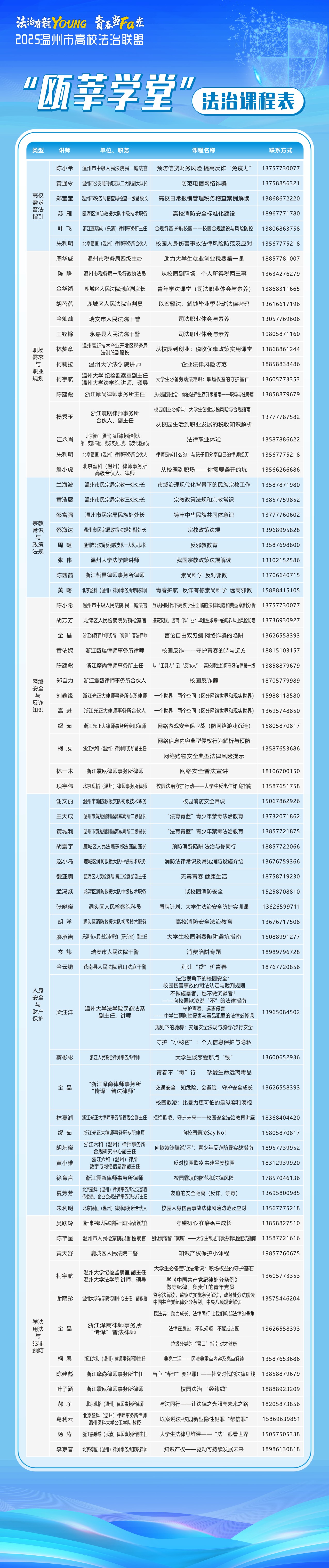 “瓯莘学堂”法治课程表。温州市司法局供图