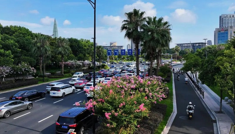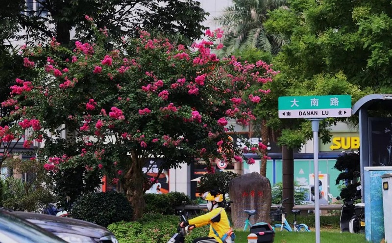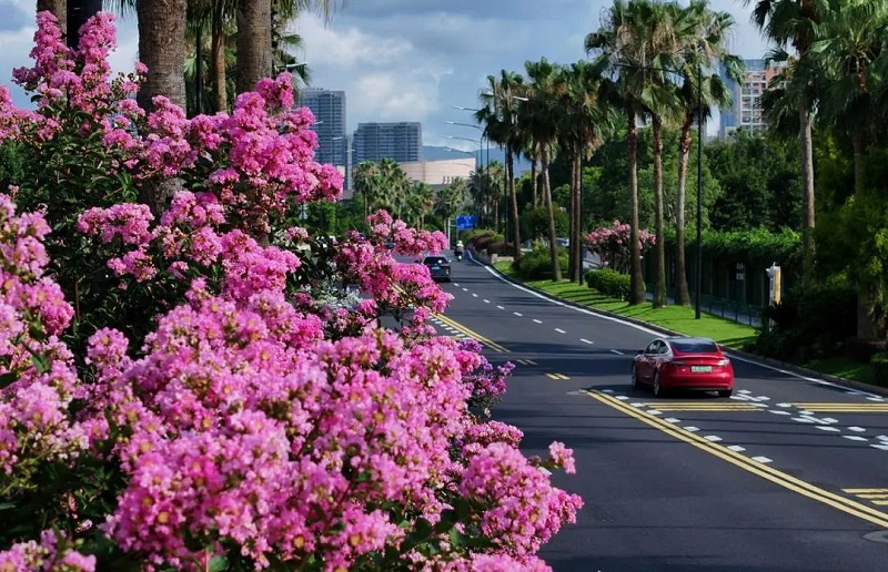 鹿城区道路紫薇以传统紫薇为主,近年来更不断引进“红火箭”、“天鹅绒”、矮紫薇等新优品种,优化花期衔接与株型搭配,只为在盛夏缔造更动人的街景。