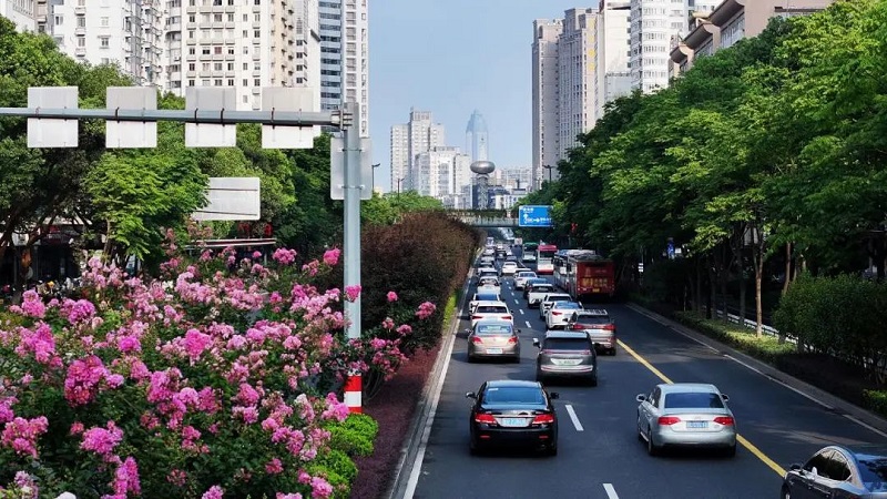 绵延不绝的紫薇花带,瞬间提亮了城市的色彩基调,柔和了钢筋水泥的线条,在绿意葱茏间,织就一城流动的浪漫锦缎。(温州发布供图供稿)